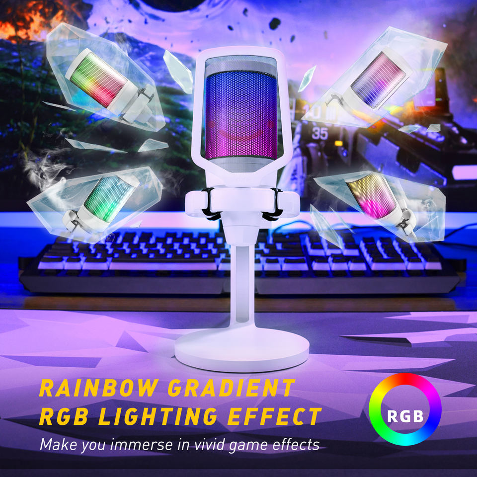 -น้ำหนัก, คอนเดนเซอร์ไมโครโฟน, ไมโครโฟน USB, พร้อม RGB Lighting, แบบพกพา, เสียงยกเลิก, LED ไฟฟังก์ชัน