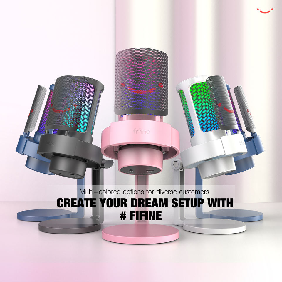 ไมโครโฟน Fifine A8 สีชมพู ไมโครโฟนคอนเดนเซอร์แบบ USB สำหรับบันทึกเสียงในสตูดิโอ ไมโครโฟนสำหรับไลฟ์สตรีมมิ่ง ไมโครโฟนเกมมิ่งระดับมืออาชีพพร้อมไฟ RGB