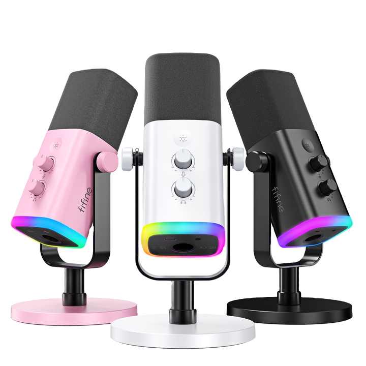 ไมโครโฟน Fifine AM8 สำหรับเล่นเกมส์ ไมค์แบบมีสายสำหรับเกมเมอร์ ไมโครโฟนสำหรับบันทึกเสียงในสตูดิโอ ไมโครโฟนเกมมิ่ง RGB สำหรับพีซี