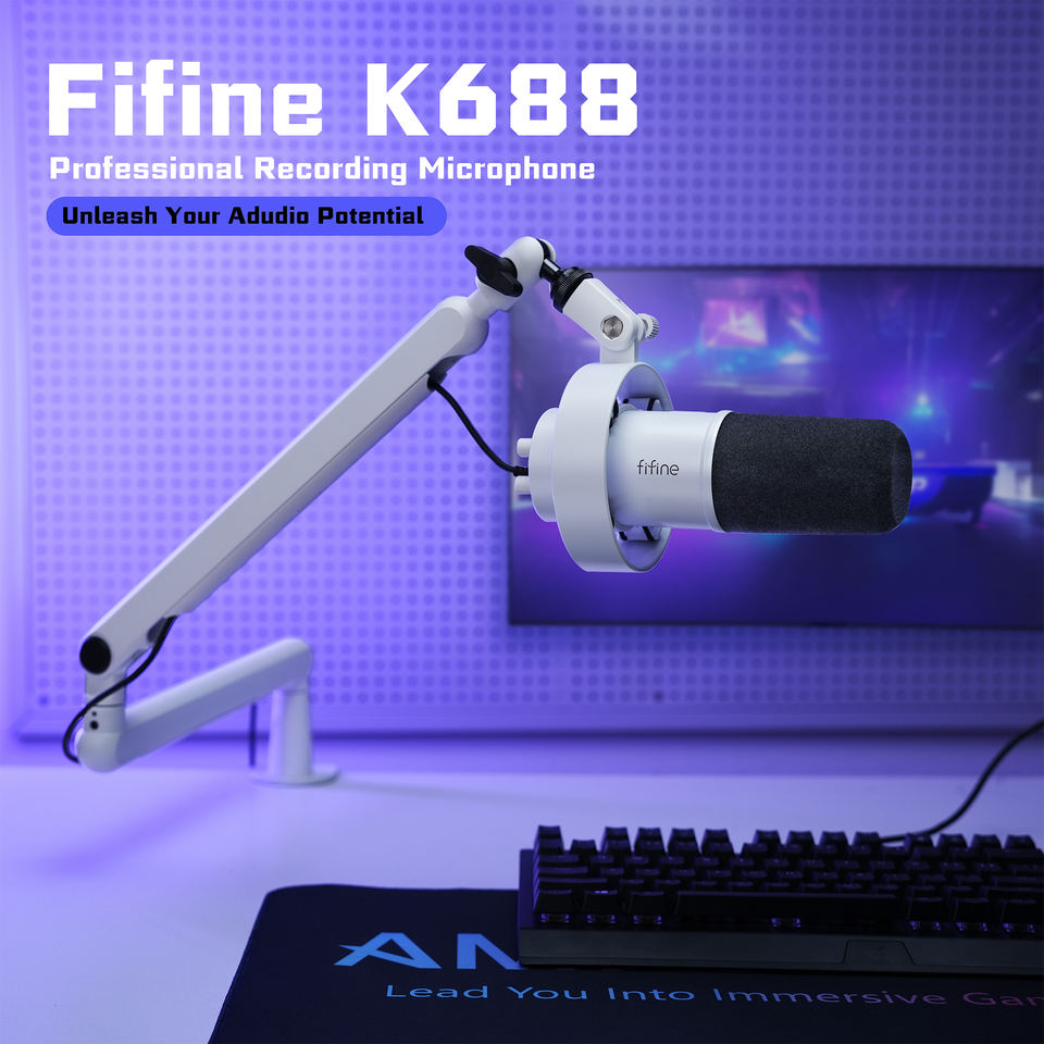 ไมโครโฟน Fifine Amplitank XLR สำหรับพีซี ไมโครโฟนพอดแคสต์แบบ USB ไมโครโฟนสตูดิโอระดับมืออาชีพ ไมโครโฟนแบบไดนามิกพร้อมแขนบูม ไมโครโฟนแบบมีสายสำหรับบันทึกเสียง