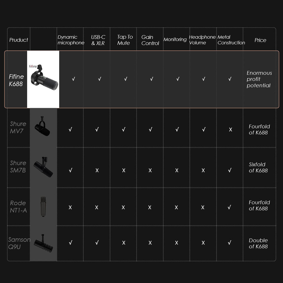 ชื่อผลิตภัณฑ์:ไมโครโฟนแขน T688 fifine
