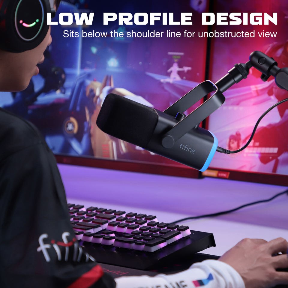 Fifine ไมโครโฟน USB พ็อดคาสท์แบบมีสายไมโครโทรศัพท์ XLR ไมโครโฟนสตูดิโอไมโครโฟน RGB เล่นเกม