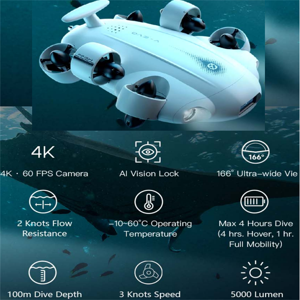 Fifish หุ่นยนต์มินิรอฟใต้น้ำ100ม. โดรน4K กล้อง RC FPV มอเตอร์โดรน6แกนสำหรับตกปลา VR พร้อมแขน