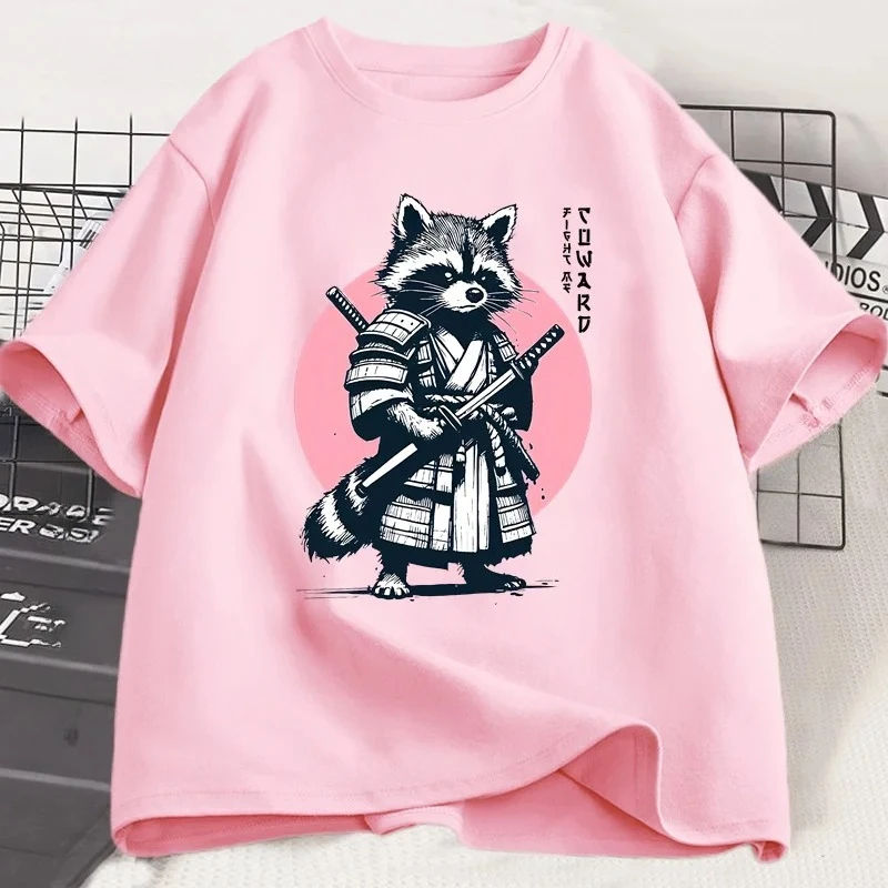 เสื้อยืดลายกราฟิกตลกๆ ลายแมวญี่ปุ่น แรคคูนซามูไร แนววินเทจ แขนสั้น คอกลม เสื้อยืดผู้หญิง สไตล์ Y2K