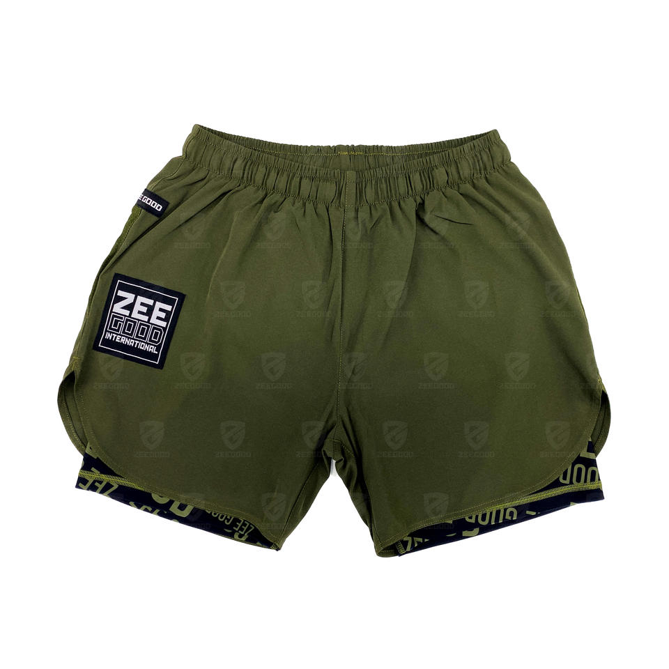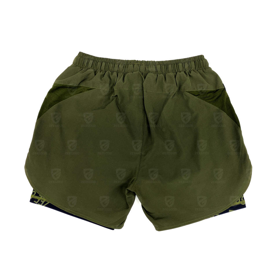 กางเกงต่อสู้แบบ2-in-1 BJJ MMA กางเกงขาสั้นแบบมีซับในแบบมีการบีบอัดในตัวกางเกงขาสั้นตาข่าย