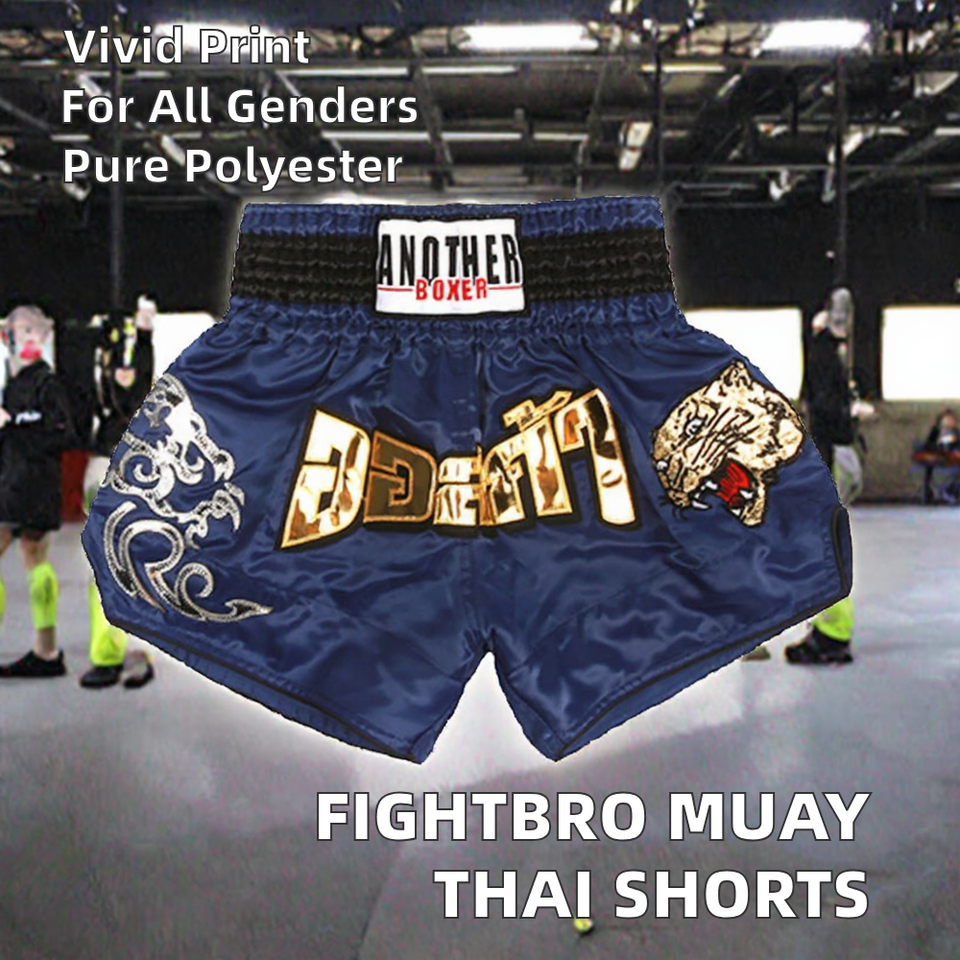 Fightbro กางเกงขาสั้นไทยยืดโลโก้ด้านหน้าระบายอากาศได้ดีแห้งเร็ว