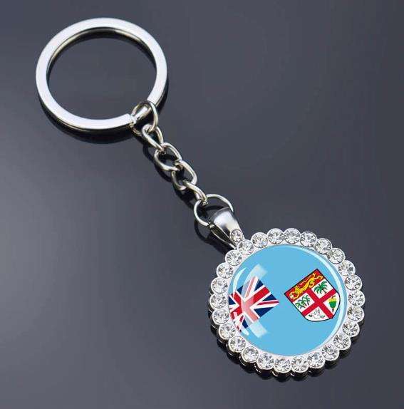 พวงกุญแจคริสตัลรูปธงชาติฟิจิ ชุดเต็ม พร้อมจี้ห้อยกระเป๋า เครื่องประดับแก้ว ของที่ระลึกสำหรับการเดินทาง