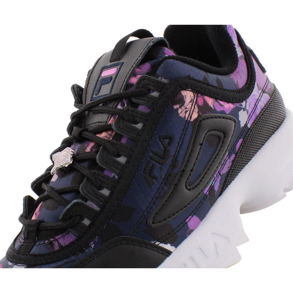 Fila disruptor II รองเท้าผ้าใบผู้หญิงเที่ยงคืนการ์เด้นสีพื้นรองเท้ากันกระแทกน้ำหนักเบาสีดำ/ สีม่วง/สีฟ้าสำหรับเดินสว่าง
