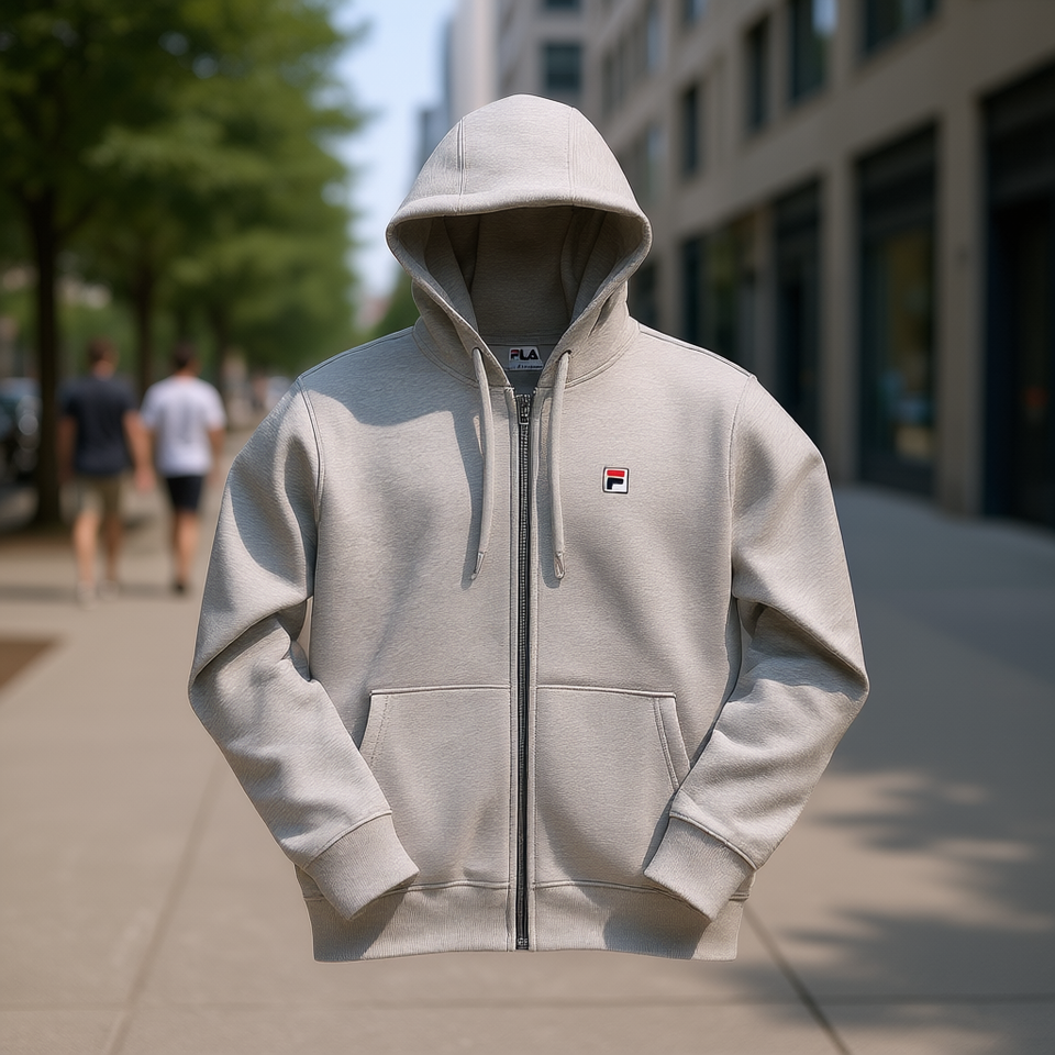 เสื้อฮู้ดซิปเต็มตัว Fila รุ่นคลาสสิกสำหรับผู้ชาย สีเทา ทรงปกติ ผ้าเฟรนช์เทอร์รี่กันยับ เหมาะสำหรับฤดูใบไม้ร่วง ฤดูหนาว และฤดูใบไม้ผลิ