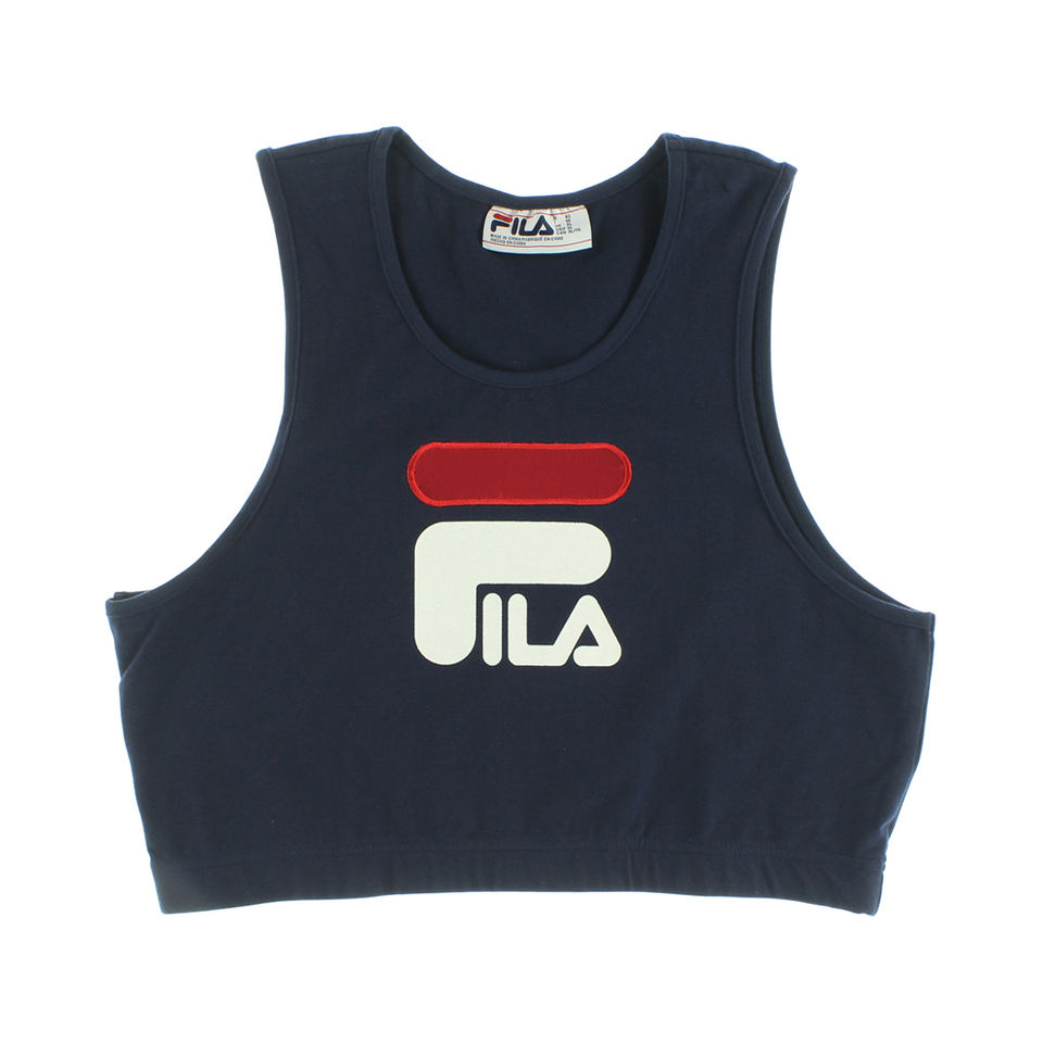Fila Odette เสื้อครอปและเสื้อยืดสำหรับผู้หญิงสไตล์สปอร์ตระบายอากาศได้พิมพ์ลายฤดูร้อนสีฟ้า/ขาว/แดง | ของแท้100%