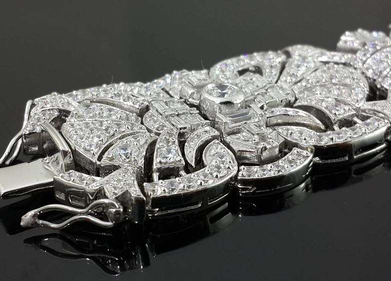 สร้อยข้อมือเทนนิสลายถักสำหรับผู้หญิง | เครื่องประดับวินเทจสีขาว14K เงินสเตอร์ลิง925 | เครื่องประดับ adastra