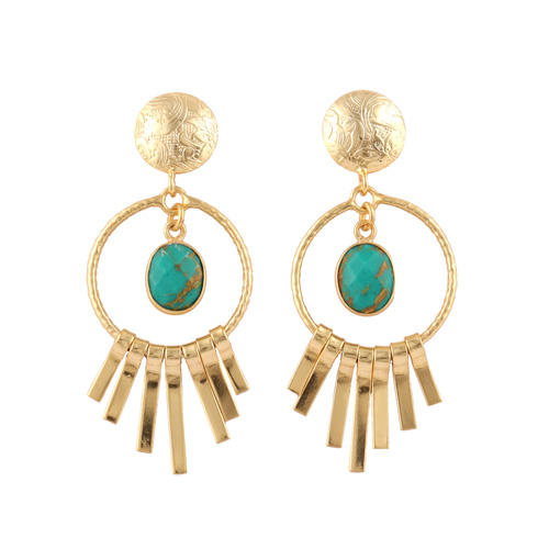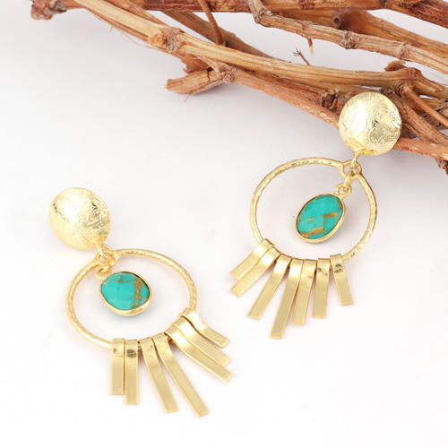 ต่างหูชุบทองทองเหลืองดีไซน์เก๋,ต่างหูแบบห้อยสีเขียวเทอร์ควอยซ์สีเขียว