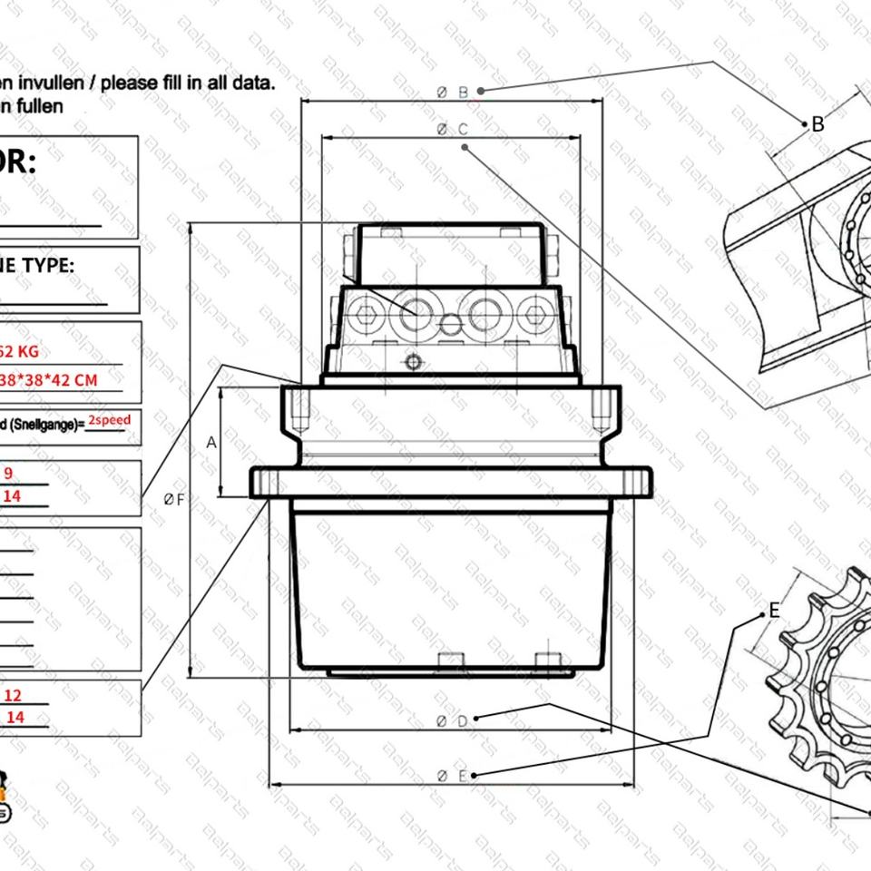 ชุดเฟืองท้ายสำหรับอะไหล่รถขุด SY55C-9 รุ่น NACHi PHV-4B-60B ชุดมอเตอร์เดินหน้าสำหรับเครื่องจักรกลวิศวกรรม