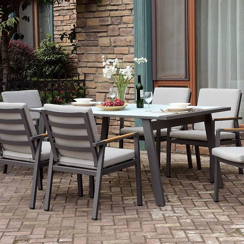 ชื่อสินค้า:ชุดโต๊ะรับประทานอาหารกลางแจ้งไม้สัก Finch พร้อมเก้าอี้เบาะนุ่ม