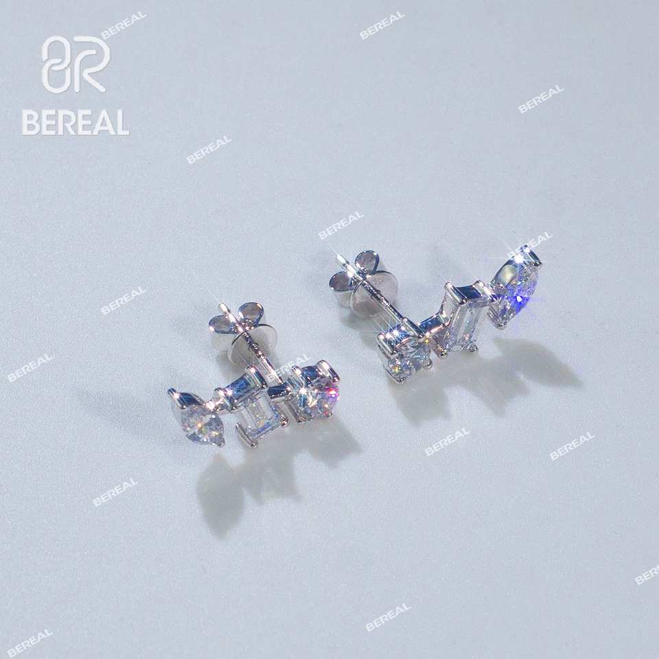 ต่างหูเพชรเม็ดเดี่ยวสีทอง18K สามเม็ดอัญมณีอัญมณีสีเงิน925เย็นต่างหูเพชรที่สดใสสำหรับผู้หญิง