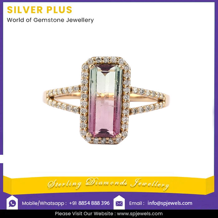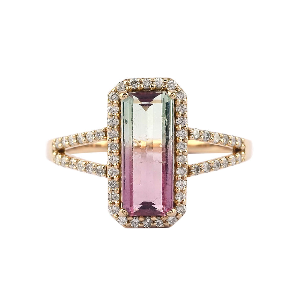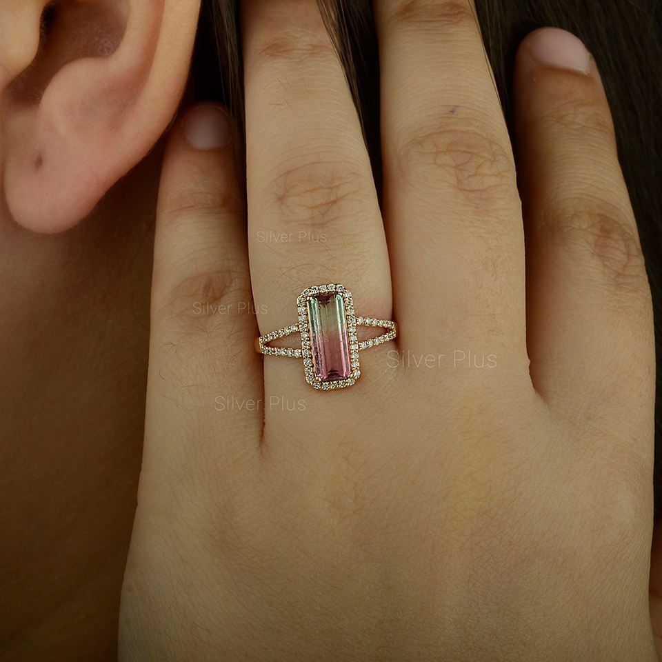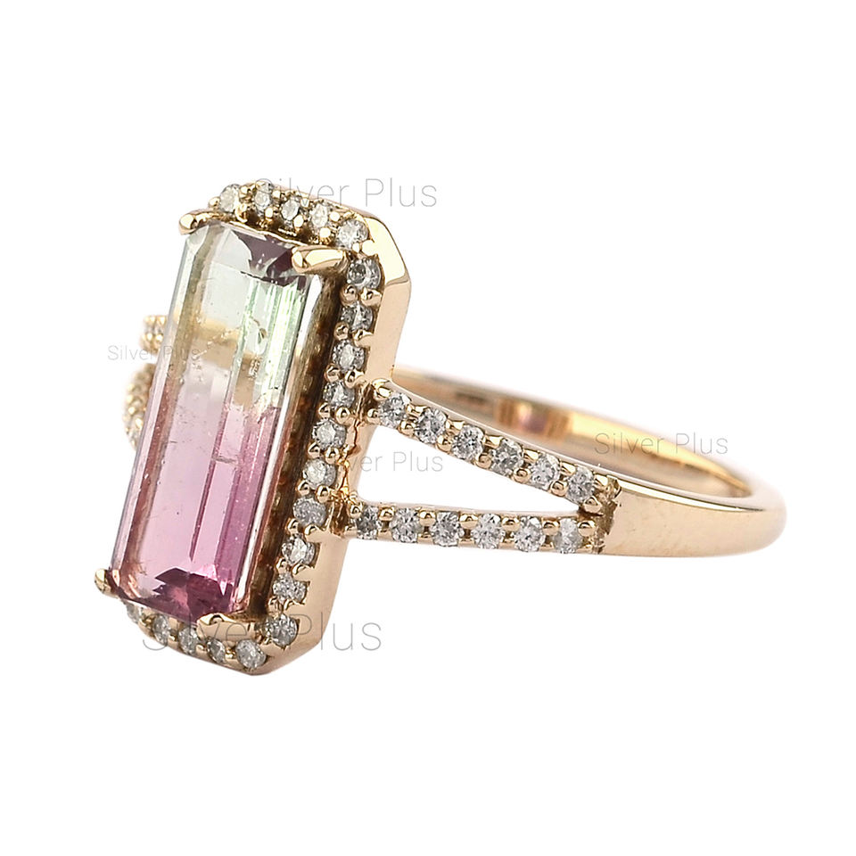 แหวนพลอยทัวร์มาลีนประดับเพชรรูปแตงโมสีทอง18K สำหรับปาร์ตี้งานแต่งงานสำหรับผู้หญิงเครื่องประดับอินเดียแบบคลาสสิกพร้อมการตั้งค่าแบบมีง่าม