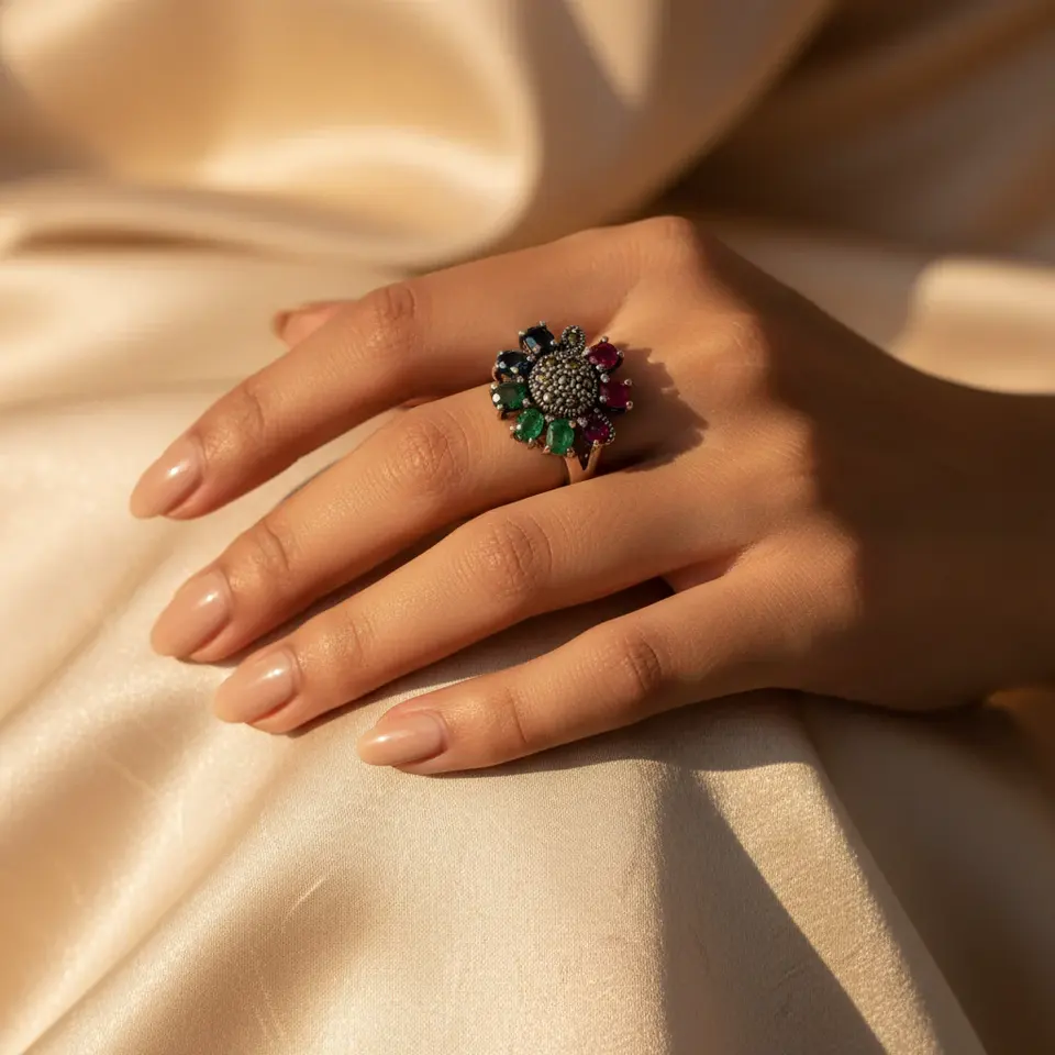 แหวนจี้รูปดอกไม้ประดับพลอยเงินแท้ 925 สำหรับผู้หญิง - ตัวเลือกของขวัญ