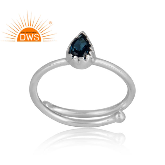 Fine 925สเตอร์ลิงแหวนปรับได้เครื่องประดับลอนดอนธรรมชาติสีฟ้าบุษราคัมพลอยแหวนเครื่องประดับผู้ค้าส่ง