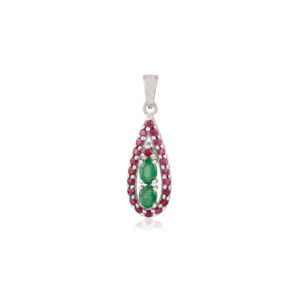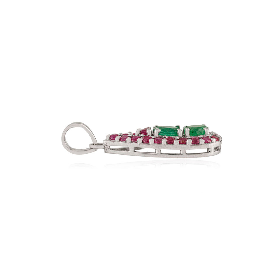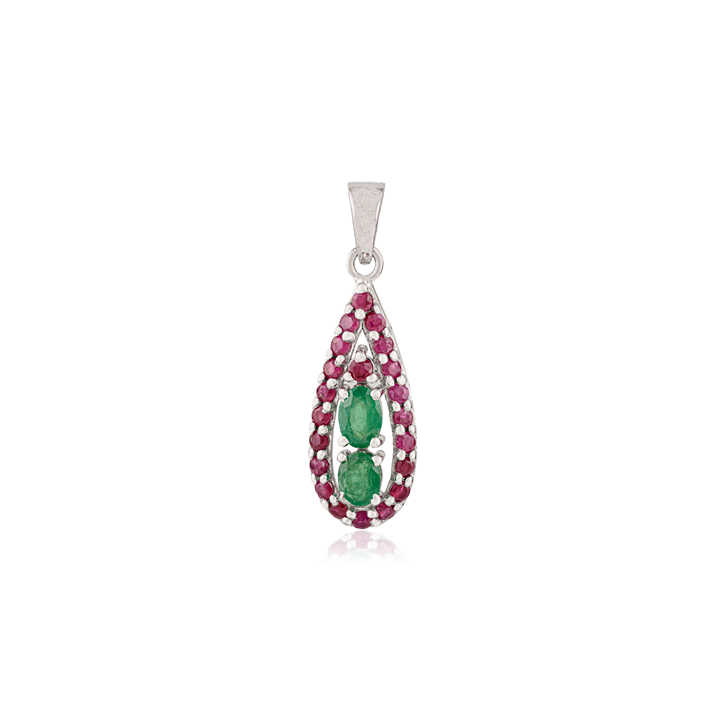 จี้เงินแท้ 925 ประดับมรกตและทับทิมทรงหยดน้ำสำหรับผู้หญิง ชุบโรเดียม ของขวัญวันครบรอบ