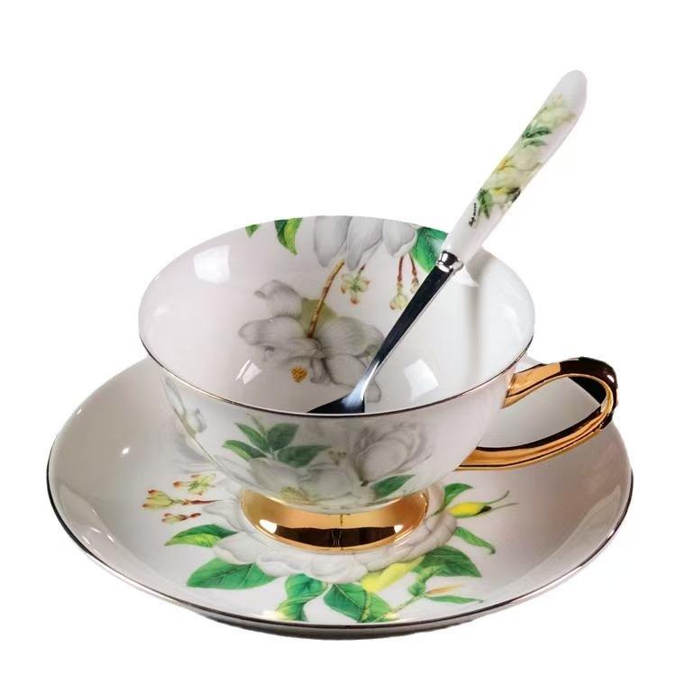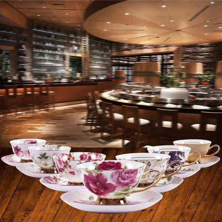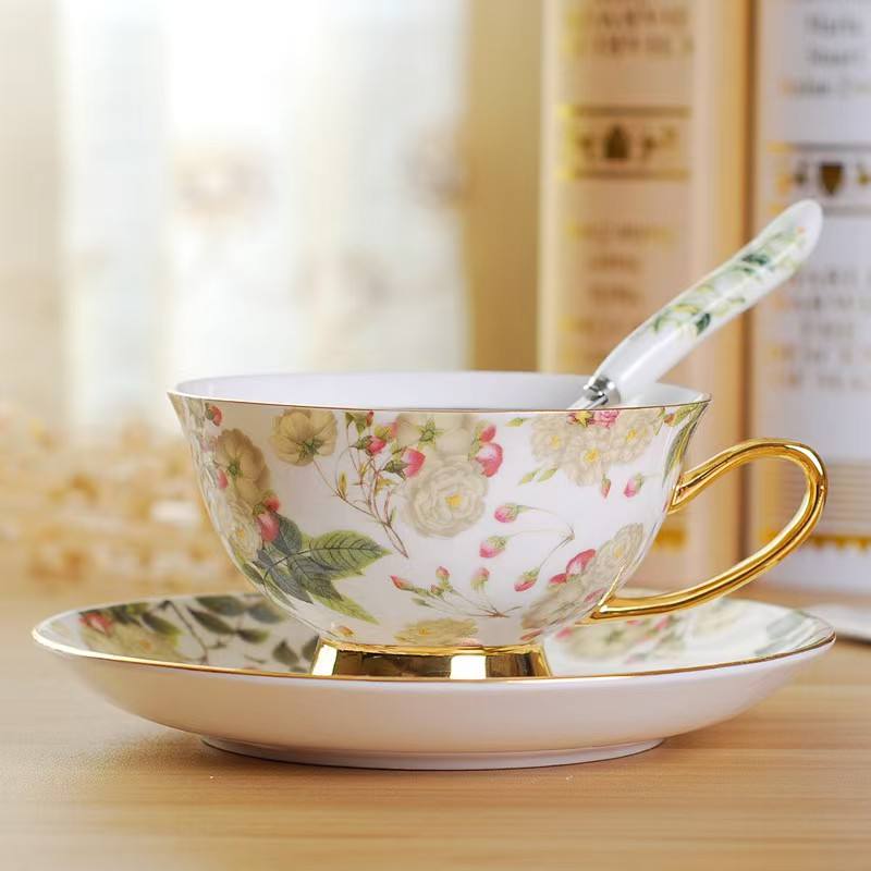 Bona ถ้วยกาแฟลายดอกจีนชุดจานชามถ้วยชามหรูหราถ้วยชาจานเซรามิกขนาด200มล.