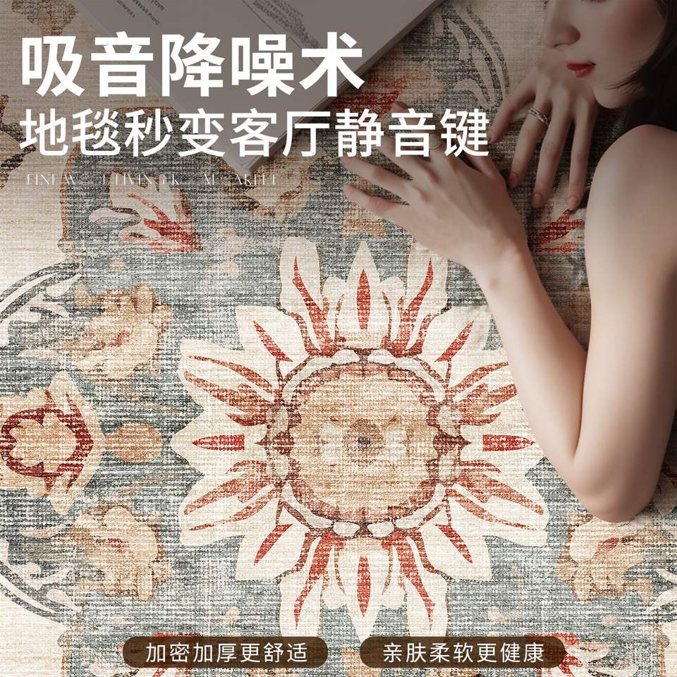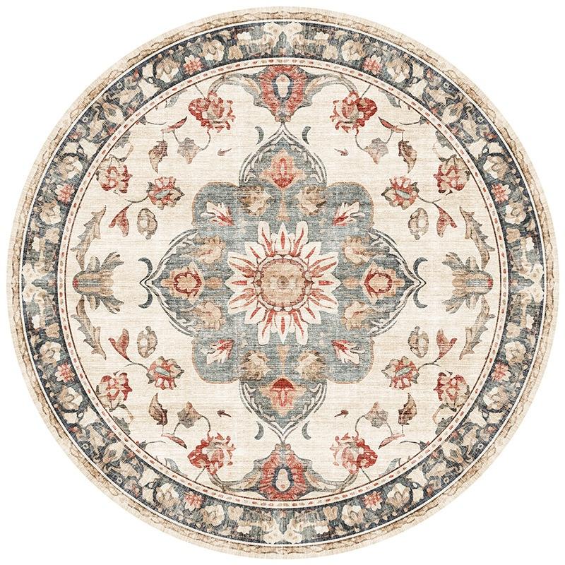 พรมกลมแคชเมียร์อย่างดี ทันสมัย เรียบง่าย ไม่ลื่นห้องนั่งเล่นห้องนอนพรมปูพื้นลายดอกไม้พรมตกแต่งระดับไฮเอนด์