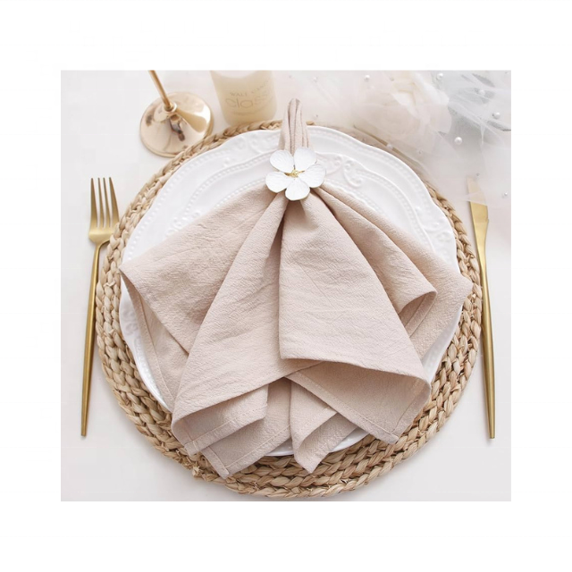 คอลเลกชั่นกอล์ฟรับประทานอาหารชั้นดีผ้าเช็ดปากคอตตอน100% ปักลายสีเบจ20x20 110 GSM