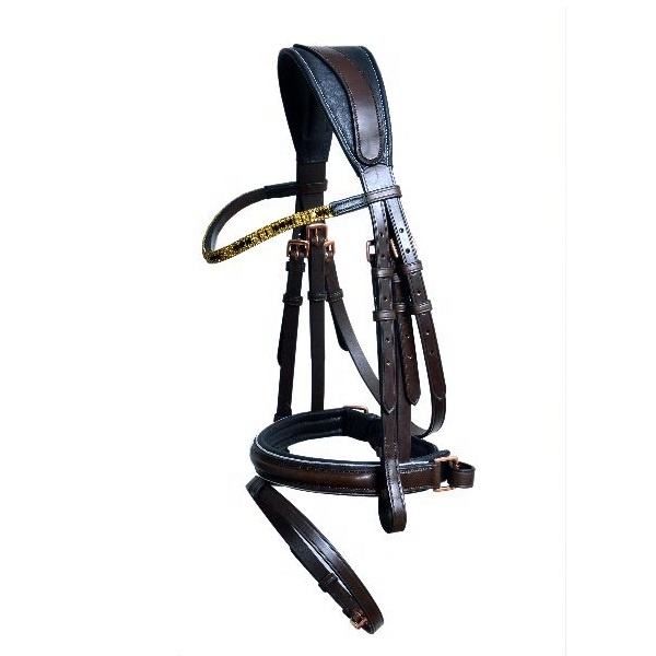 บังเหียนหนังม้าแบบอินเดียตกแต่งด้วยหนังเทียมสีน้ำตาลคริสตัล