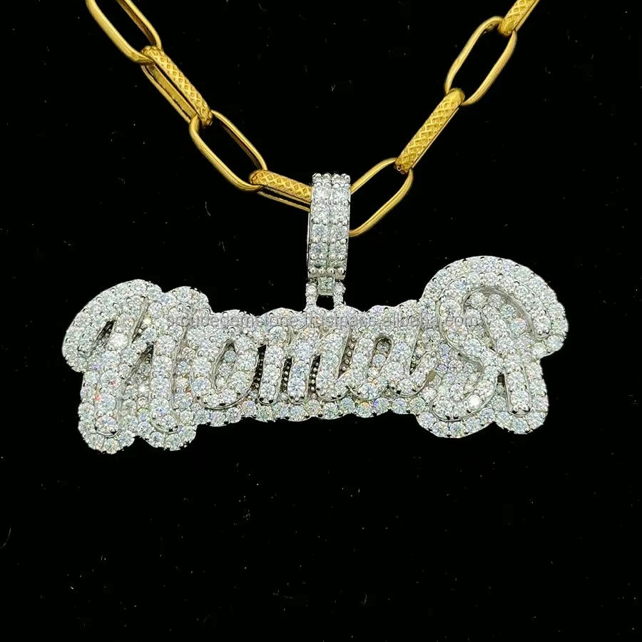 จี้ชื่อสั่งทำเพชรโมอิสซาไนต์ VVS สไตล์ฮิปฮอป เงินสเตอร์ลิงชุบทอง พร้อมใบรับรอง IGI เครื่องประดับคุณภาพดี ของขวัญสำหรับสาวๆ