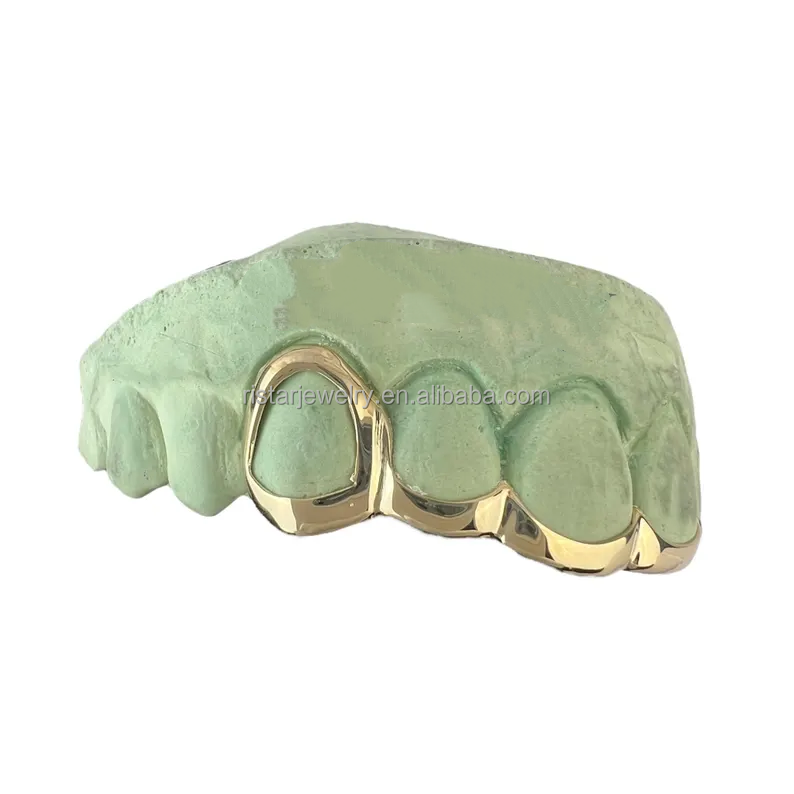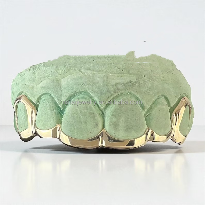 เครื่องเพชรพลอยชั้นดีเขี้ยวฮิปฮอปเปิดหน้าเป็นลอนแข็ง925สีเงินสเตอร์ลิงสีทอง6ซี่พร้อมเชื่อมสะพานกริลส์บาร์