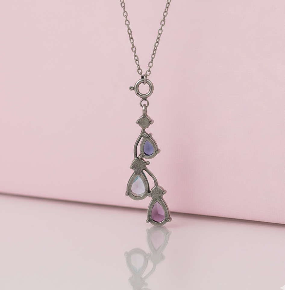 Product name:Blue Hydro Topaz Blue Amethyst Pear Necklace