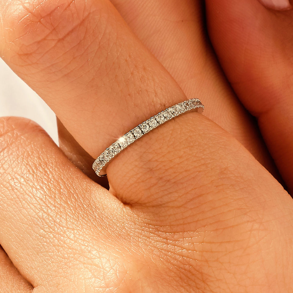 เครื่องประดับอัญมณีชั้นดี ทองคำขาว 14K 18K ได้รับการรับรองจาก IGI ระดับความใส VVS เพชรเพาะเลี้ยงในห้องปฏิบัติการ แหวนหมั้นแบบ Eternity สำหรับผู้หญิง แหวนแบบซ้อน