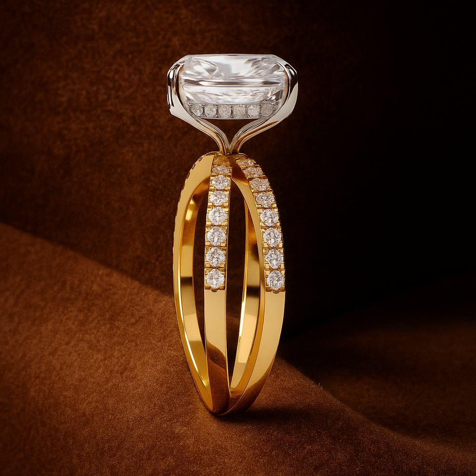เครื่องประดับชั้นดี ทองคำแท้ 14K 18K รูปทรงเรเดียนท์ เพชรเพาะเลี้ยงในห้องปฏิบัติการ แหวนหมั้นและแต่งงาน วงแหวนคู่ ความใส VVS เครื่องประดับสั่งทำพิเศษ