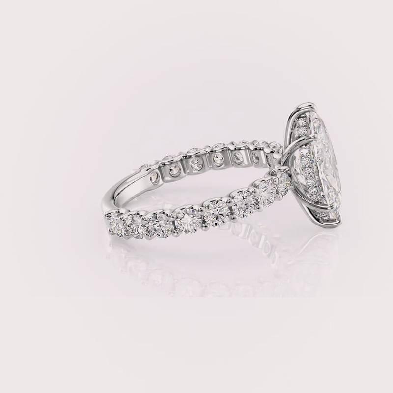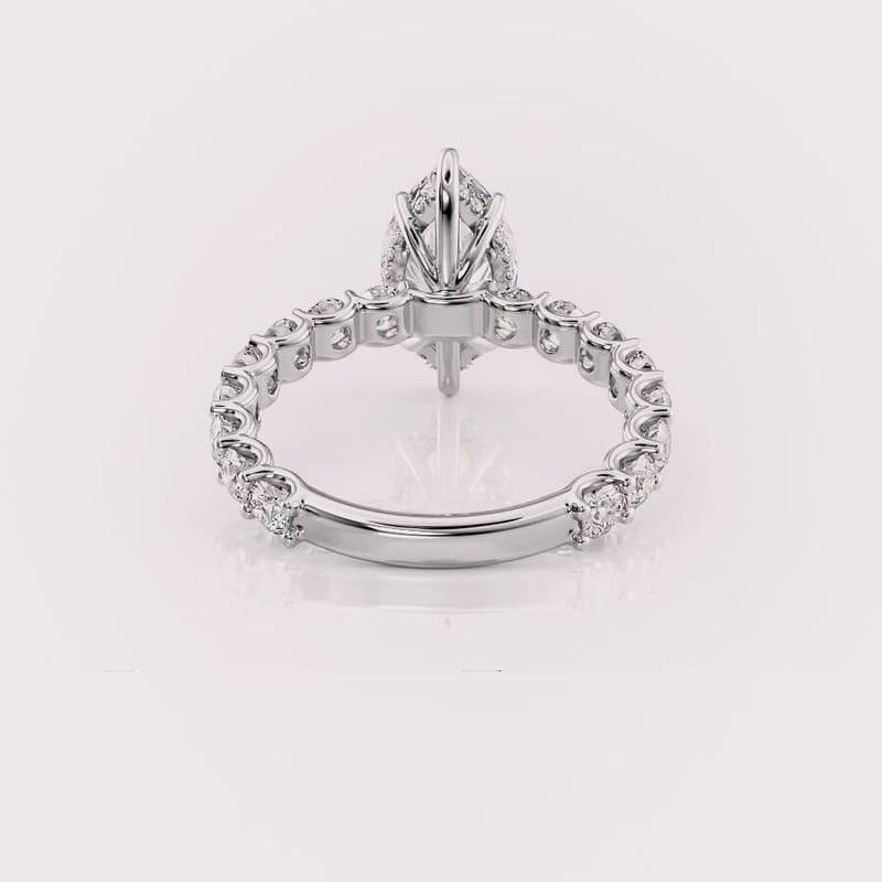 แหวนหมั้นเพชรทรงมาร์ควิสเพาะเลี้ยงในห้องปฏิบัติการ ตัวเรือนทองคำ 18K สีเหลือง พร้อมวงแหวนแบบเต็มวง