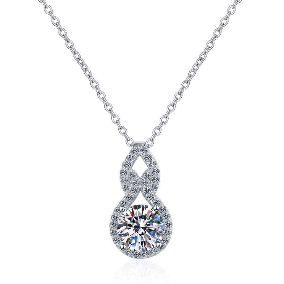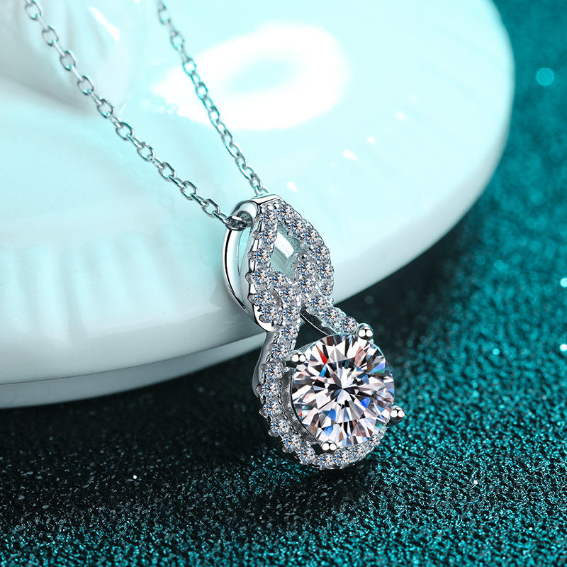 จี้เพชรโมอิสซาไนต์ทรงกลม 1 กะรัต สำหรับผู้หญิง สร้อยคอเงินแท้ 925 ชุบโรเดียม ดีไซน์ทันสมัย