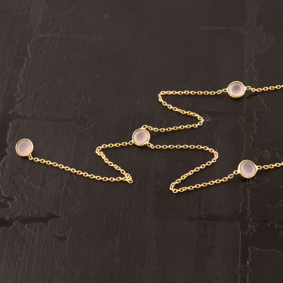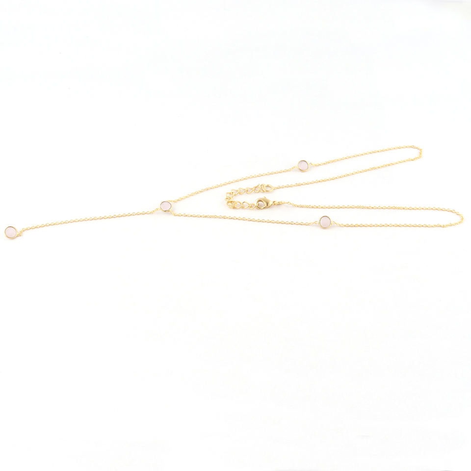 สร้อยคอลูกปัดหินสีชมพูเล็กๆทรงกลม5มม. สำหรับผู้หญิง,สร้อยคอลูกปัดหินสี Y Lariat สายโซ่ชุบทองสร้อยคอห้อยสวยงามของขวัญสำหรับผู้หญิง