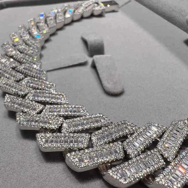 เครื่องประดับเงินแท้ 925 ชุบโรเดียม สร้อยคิวบาและกำไลข้อมือแบบเชื่อมต่อ ประดับเพชรโมอิสซาไนต์ทรงบาแกตต์ คุณภาพ VVS สไตล์ฮิปฮอปสำหรับผู้ชาย
