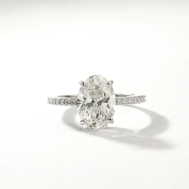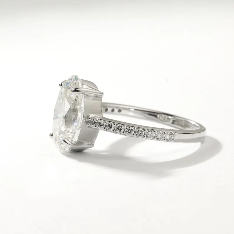 เครื่องประดับอัญมณีชั้นดี เงินแท้ 925 ทองคำขาว 10K 14K 18K แหวนแต่งงานเพชรทรงรีเพาะเลี้ยงในห้องปฏิบัติการ ตัวเรือนแบบครึ่งวงกลม