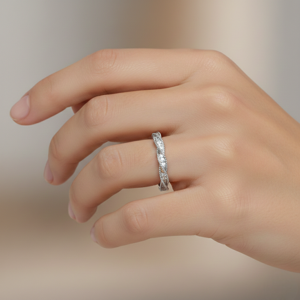 เครื่องประดับเงินแท้ 925 ชุบโรเดียม ประดับเพชรซิคอน แหวนหมั้นแบบเกลียว - ของขวัญสุดหรูสำหรับงานแต่งงานและวันครบรอบ