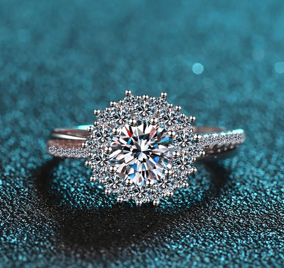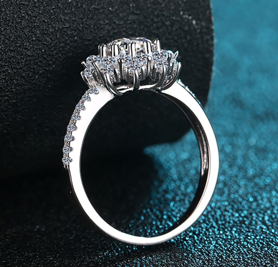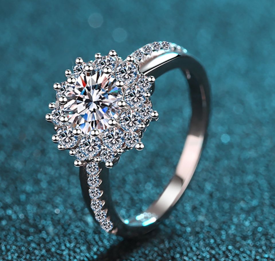เครื่องประดับที่ดี925แหวนเงินสเตอร์ลิงแหวนเพชรโมอิสซานไนต์รูปดอกไม้ดวงอาทิตย์แหวนหมั้นแหวนแต่งงานเพชรโมอิส1CT าไนต์