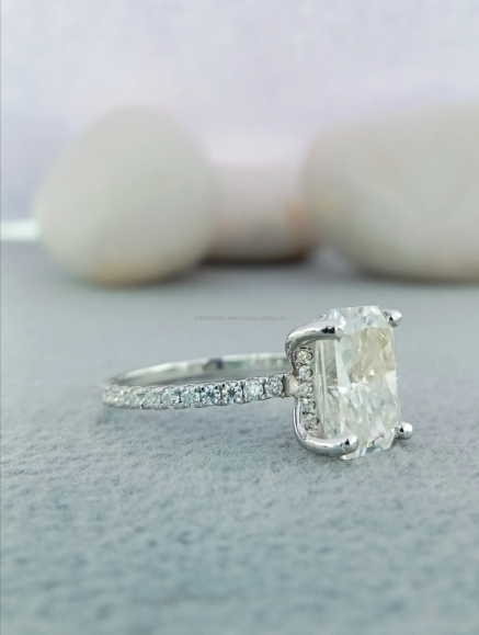 แหวนเพชรทรงแอสเชอร์ เงินแท้ 925 เพชรเลี้ยงในห้องปฏิบัติการ เจียระไนแบบเรเดียนท์ คุณภาพ VVS แหวนหมั้นเพชรเม็ดเดี่ยว 2.0 กะรัต พร้อมใบรับรอง IGI