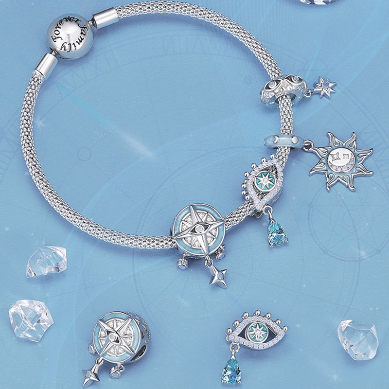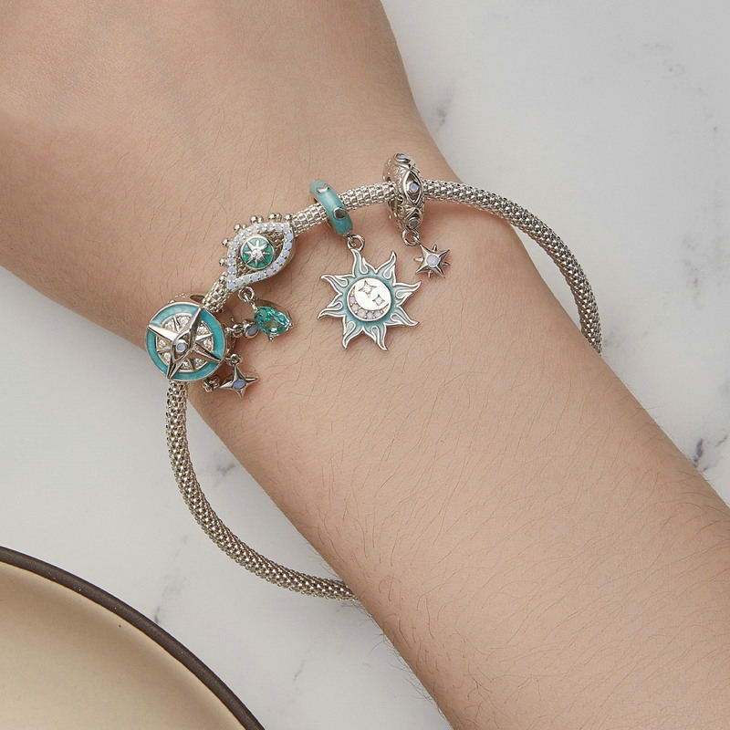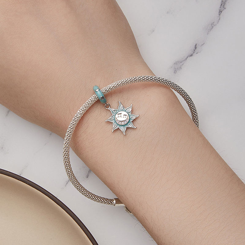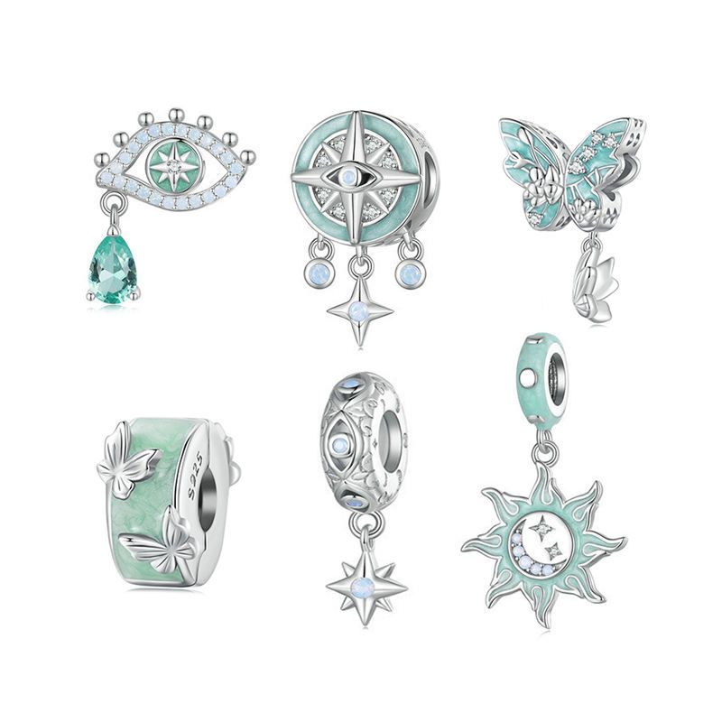 Fine Jewelry Charms European American Fashion Astrologic Sun Star Evil Eye Opal Pendant Charm Silver 925