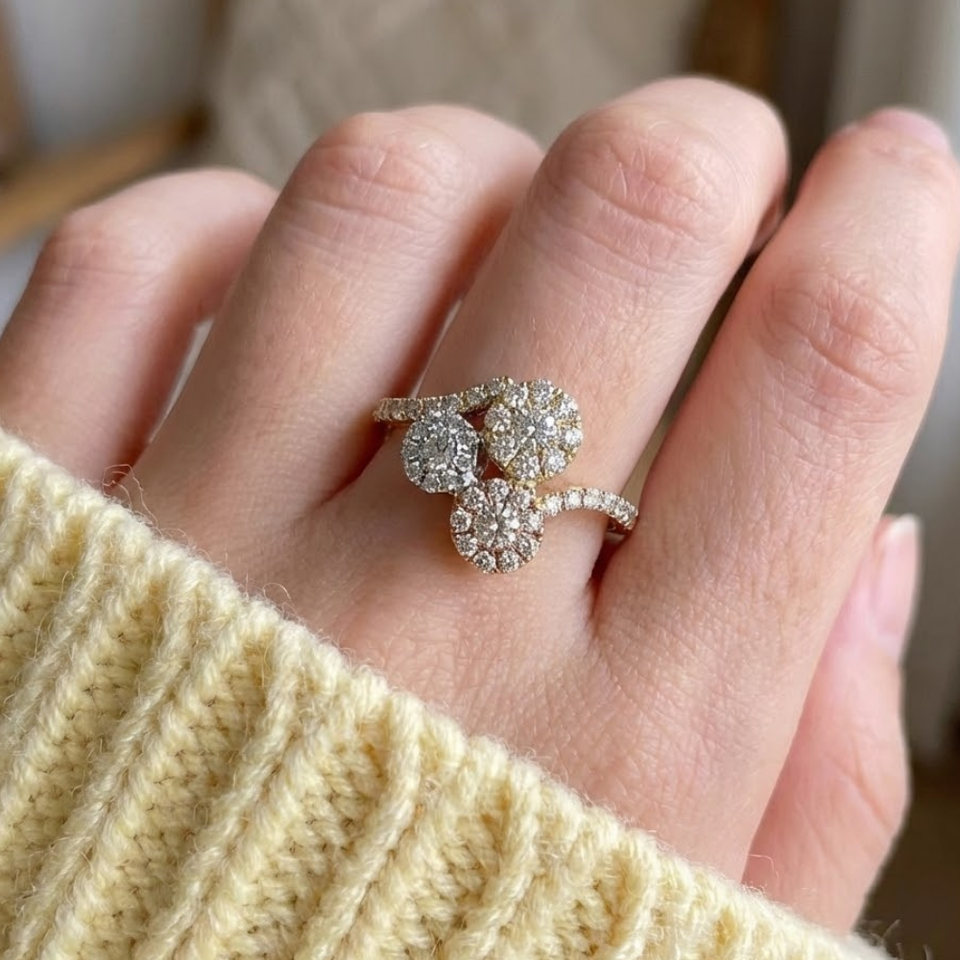 Fine Jewelry Direct Manufacturer Popular Design 18 Karat Yellow Rose White Real Diamond 3 Clusters Ring for Female Gift