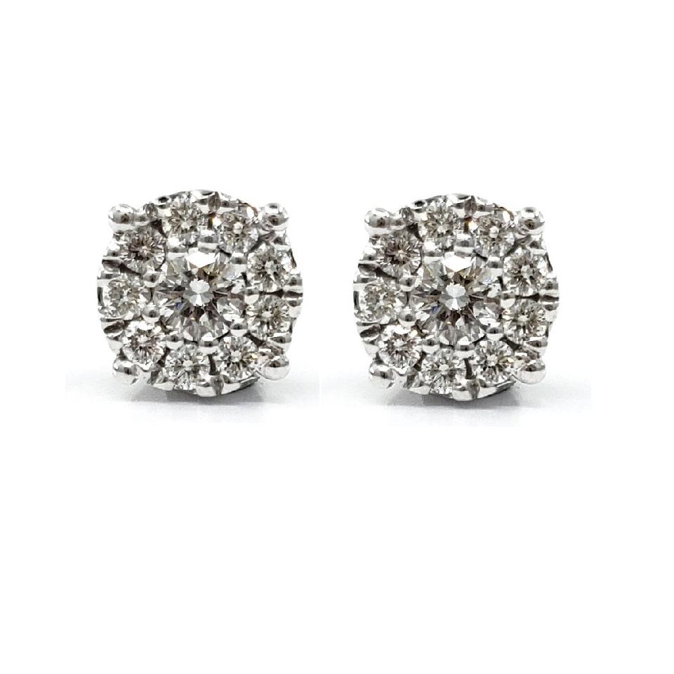 เครื่องประดับปรับลดลงเรือ18พันของแข็งสีขาวทองจริงเพชรเครื่องประดับรอบที่กำหนดเองขนาดเล็กคลัสเตอร์เพชรต่างหูสตั๊ดสำหรับผู้หญิง