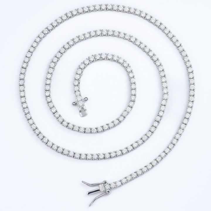 สร้อยคอเทนนิสแฟชั่นประดับเพชรโมอิสซาไนต์ VVS คุณภาพสูง ชุบโรเดียม เงินแท้ S925 ขนาด 2 มม.