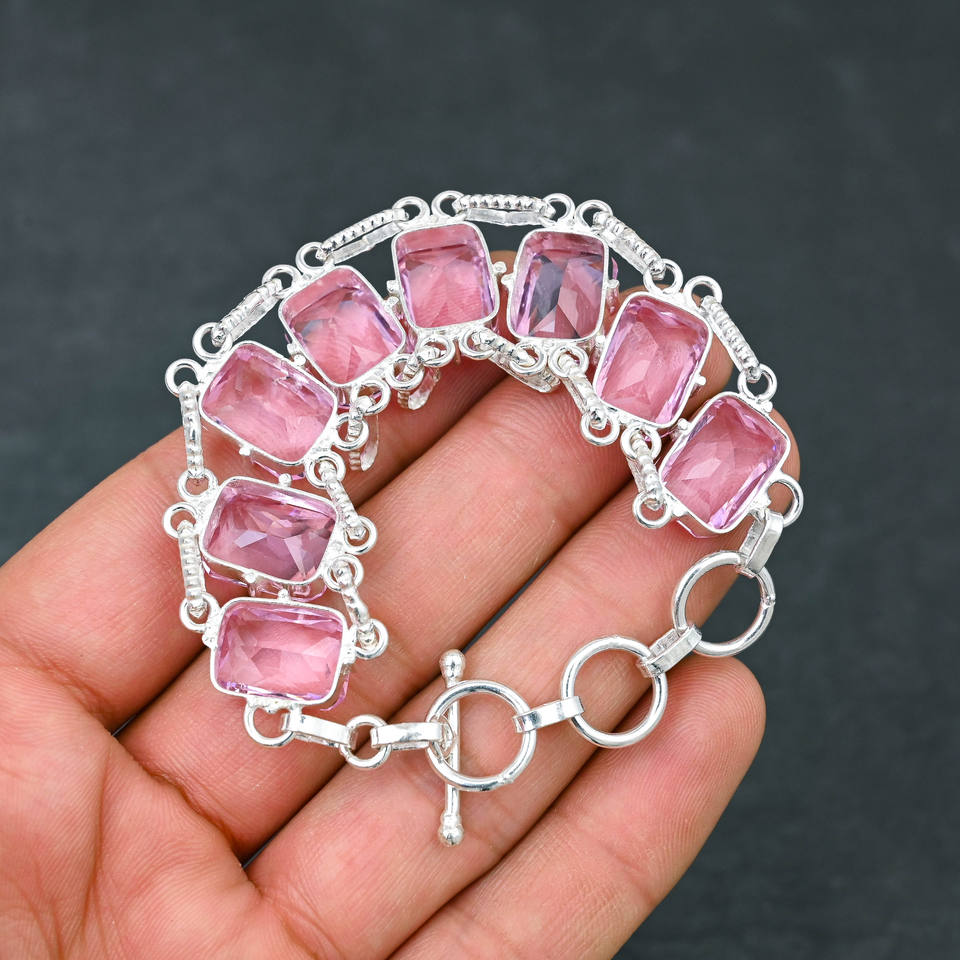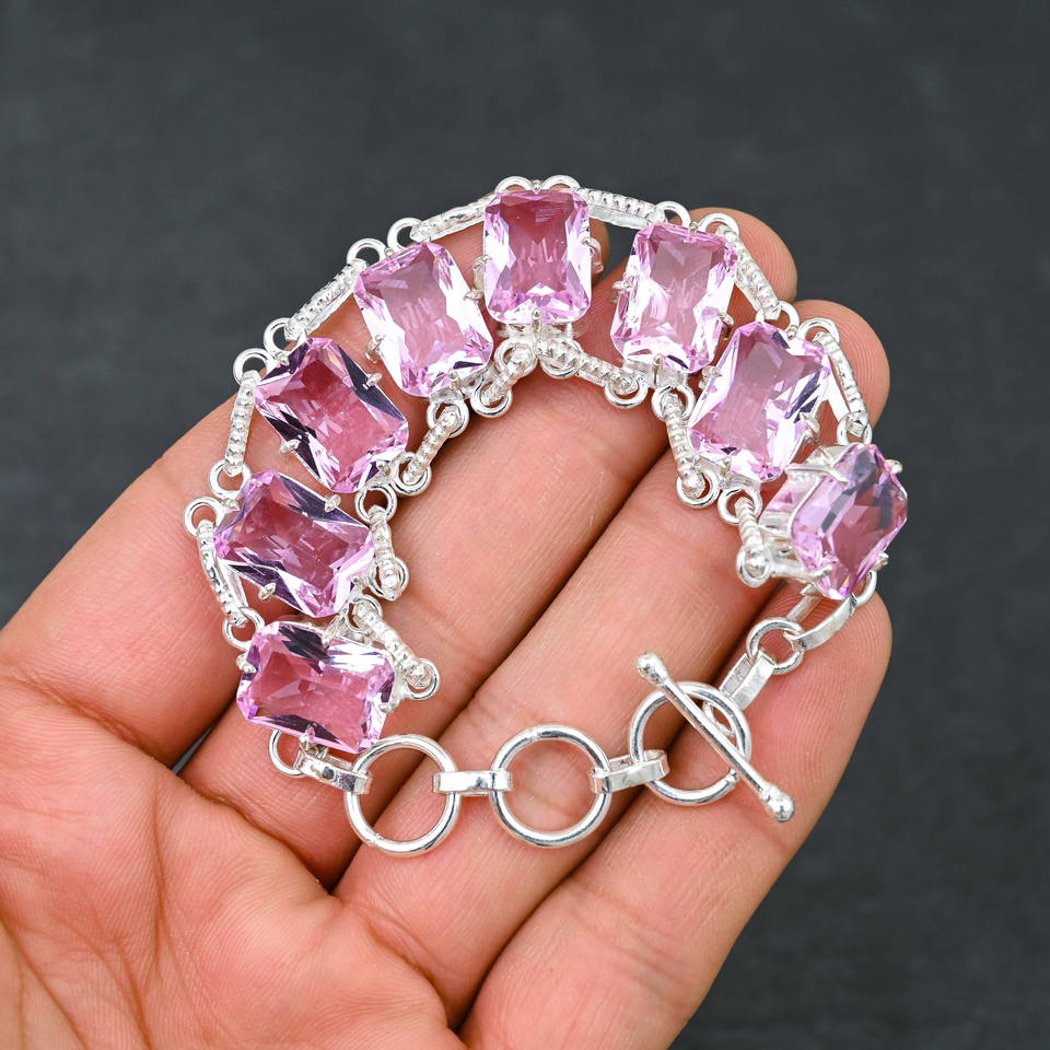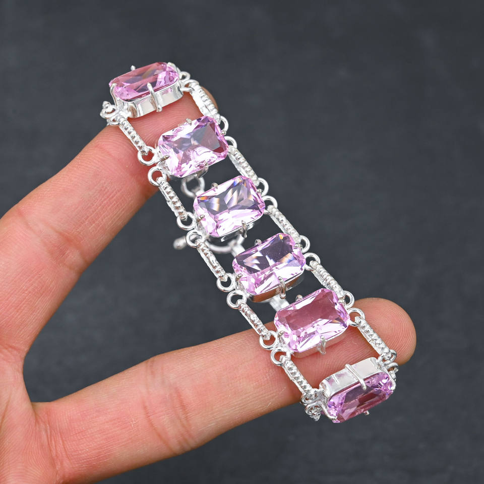 เครื่องประดับอัญมณี kunzite สีชมพูกำไลข้อมือ925เงินแบบประณีตของขวัญดีไซน์สำหรับผู้หญิงจากแล็บ