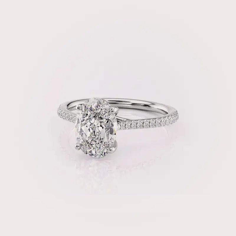 แหวนเพชรรูปไข่และเพชรทรงกลมด้านข้างจาก Fine Jewelry Lab ตัวเรือนทอง 14K สีเหลือง/สีโรส/สีขาว