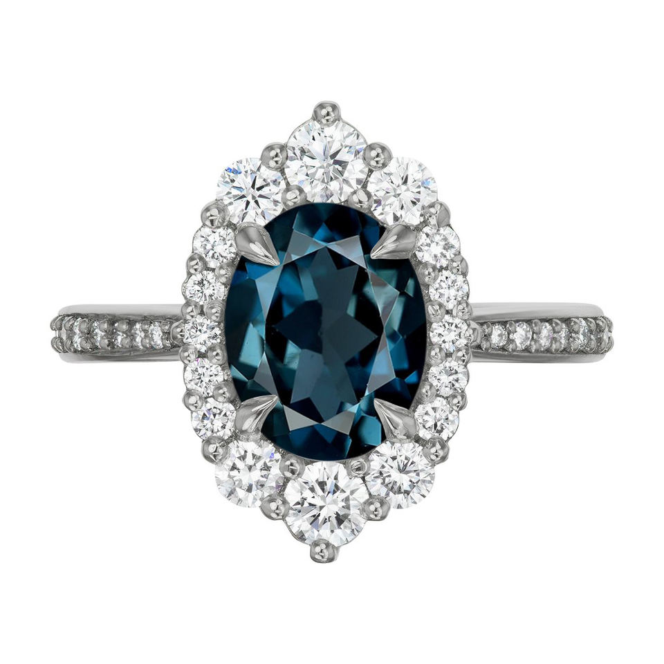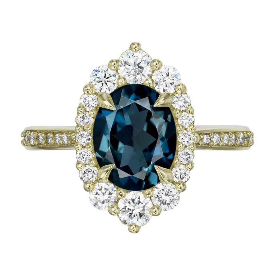 เครื่องประดับแหวนพลอยบุษราคัมและเพชรธรรมชาติสีฟ้าแหวนทอง14K ของขวัญครบรอบโรงงานผลิตตามสั่งสำหรับผู้หญิง