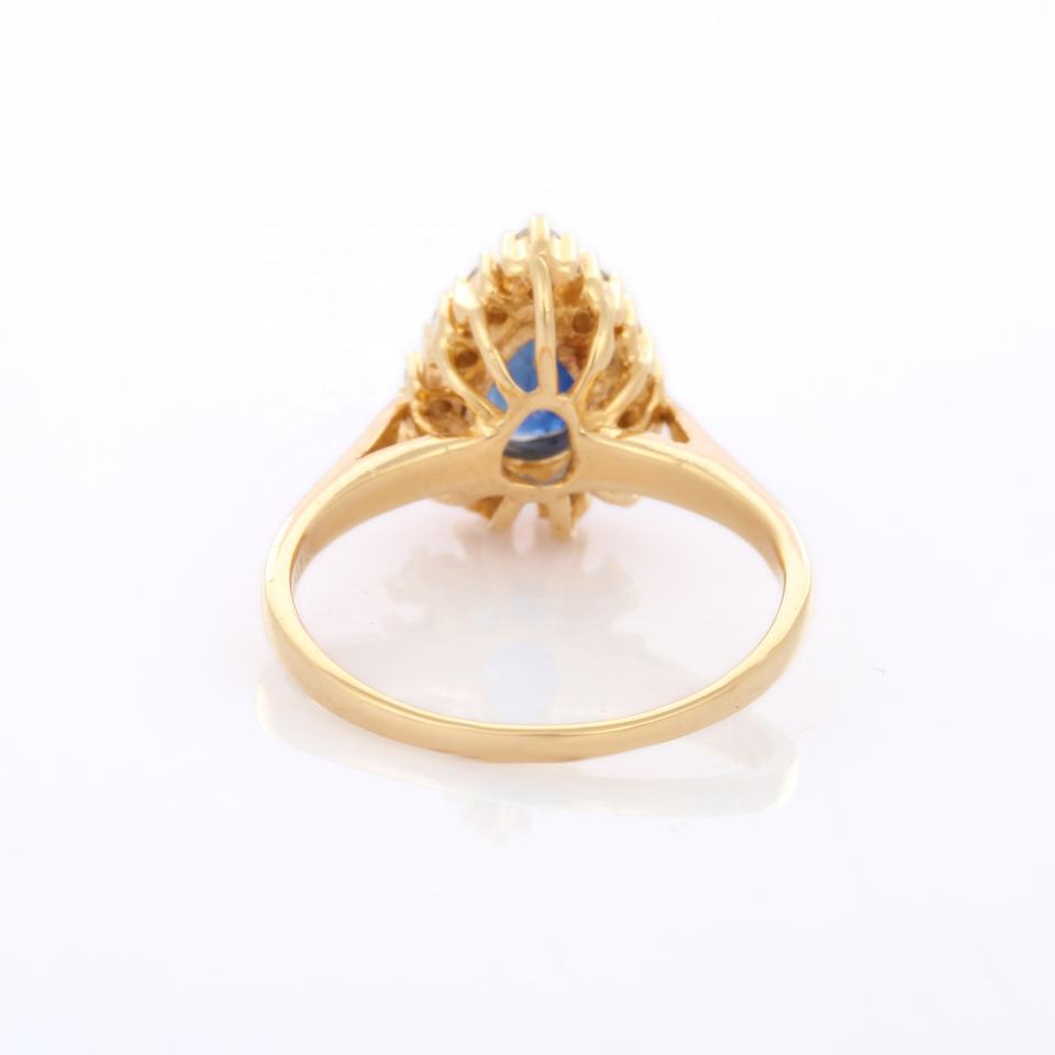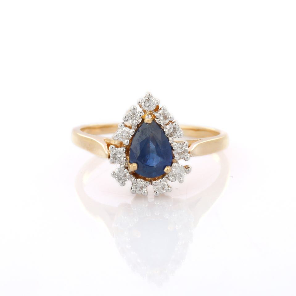 18พันสีเหลืองทองแหวนหมั้นแฮนด์เมดขายส่งผลิตภัณฑ์สำหรับผู้หญิงเครื่องประดับปรับธรรมชาติลูกแพร์สีฟ้าไพลินกับแหวนเพชร
