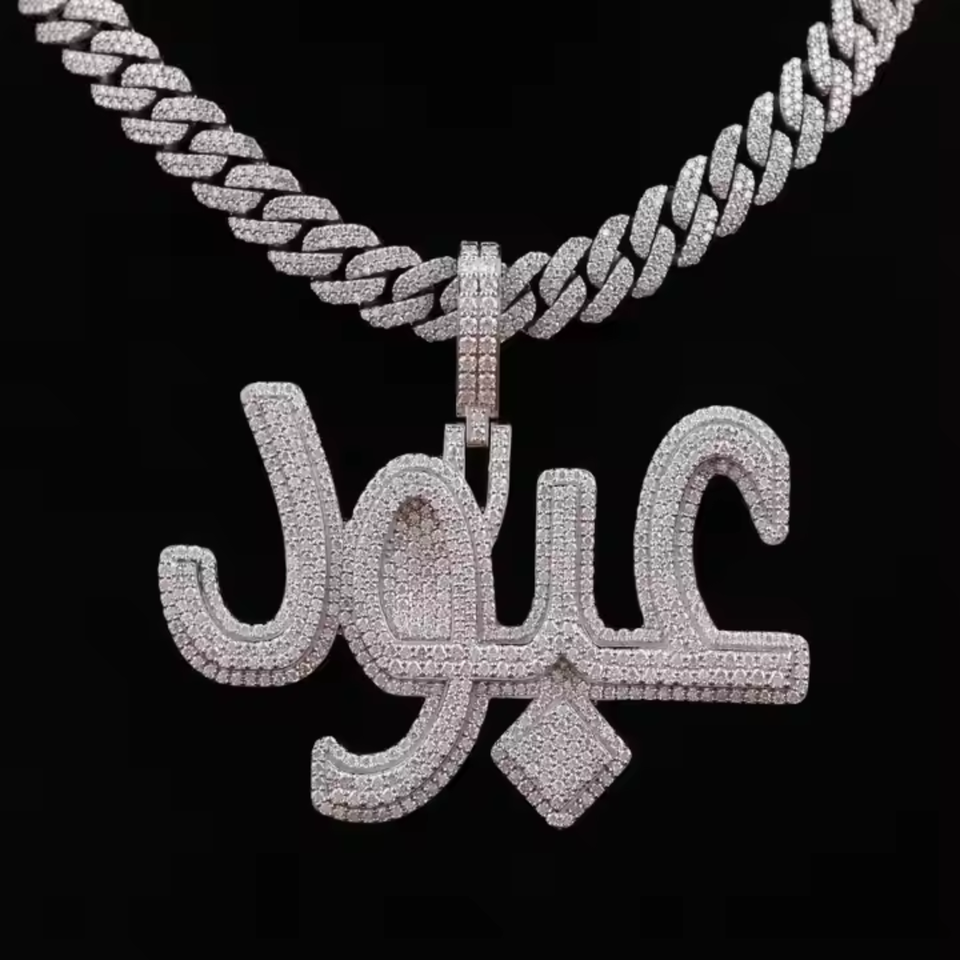 จี้เครื่องประดับที่ดีและมีเสน่ห์เย็นออก VVS Moissanite ฮิปฮอปที่กำหนดเองจี้ชื่อขนาดใหญ่ที่มีโซ่คิวบาเครื่องประดับเงิน925