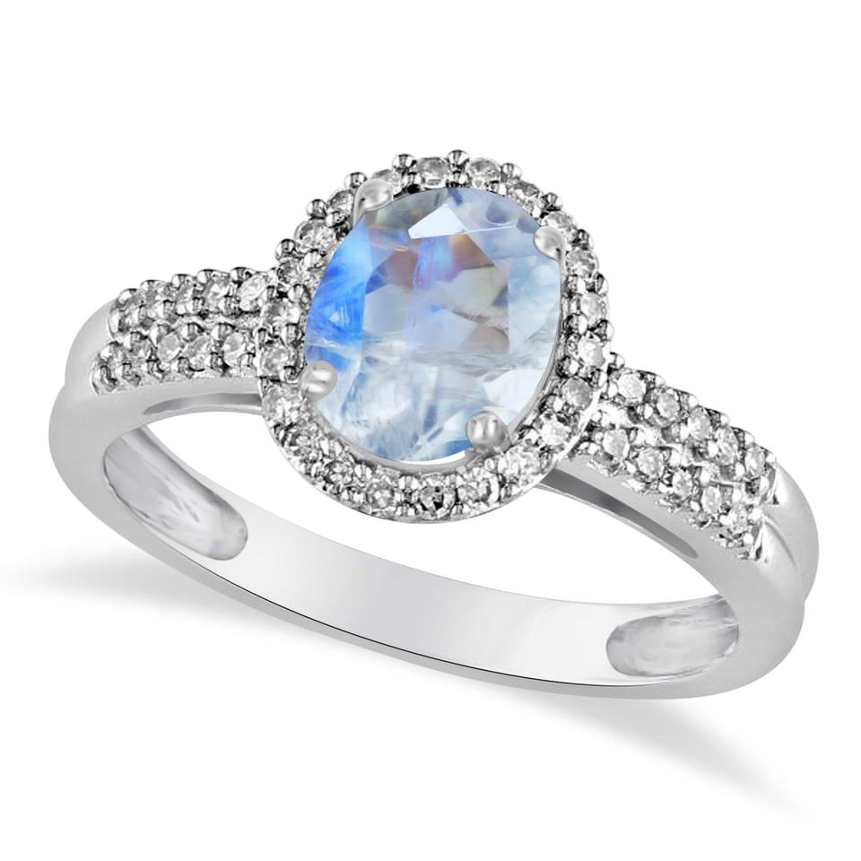 แหวนอัญมณีสีทอง14K 18K ประดับเพชรแท้และพลอยมูนสโตนสีรุ้งธรรมชาติขายส่ง